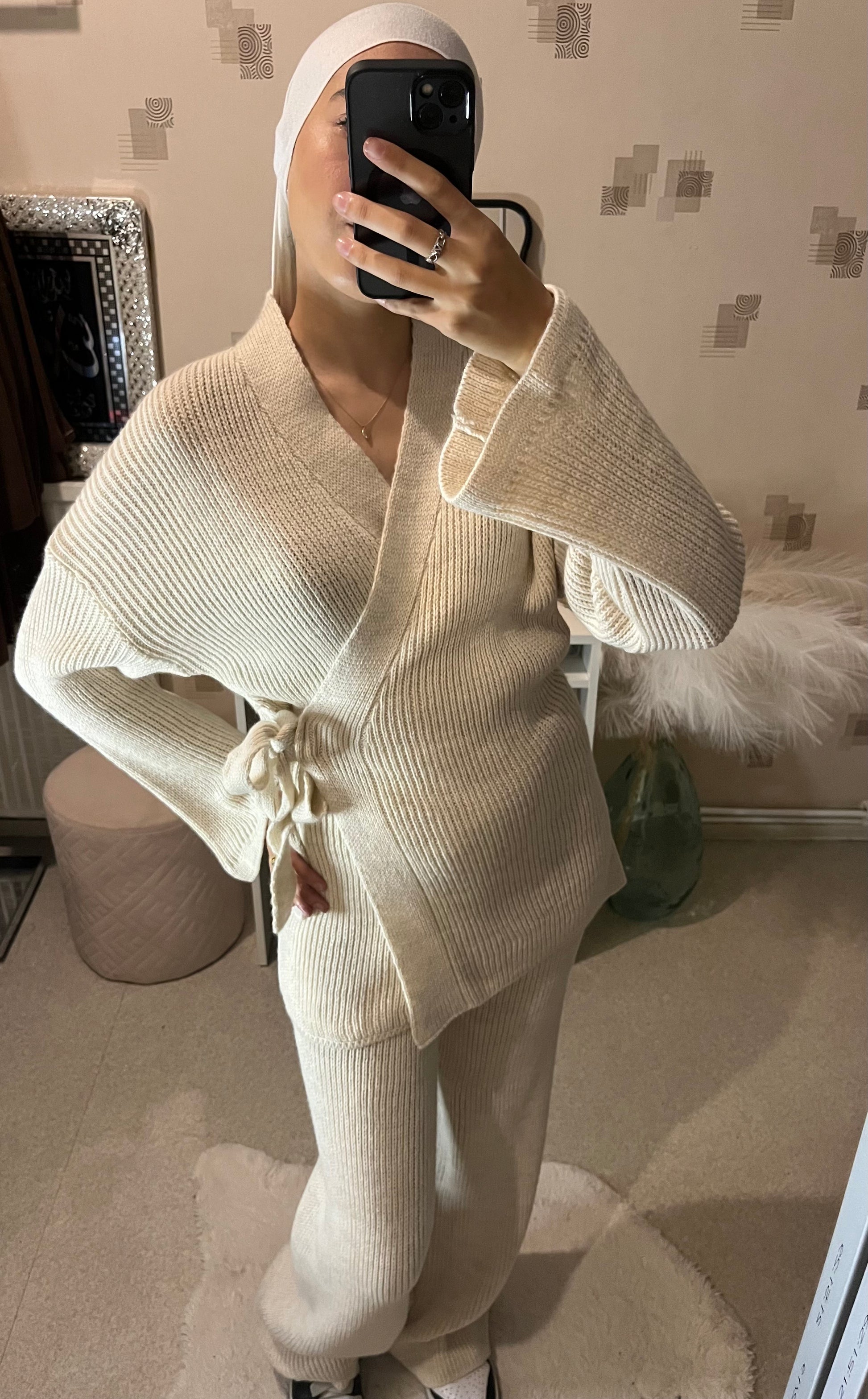 ENSEMBLE CACHE CŒUR EN LAINE
